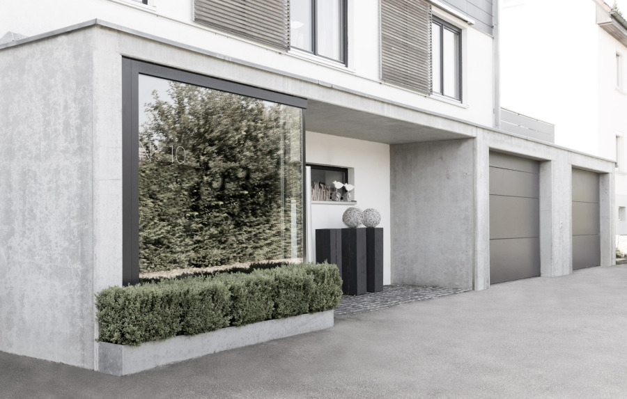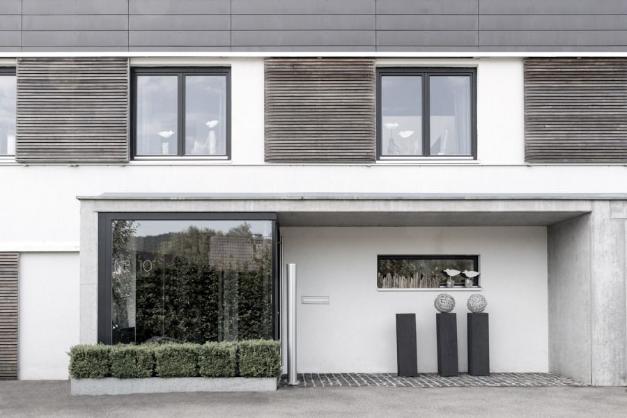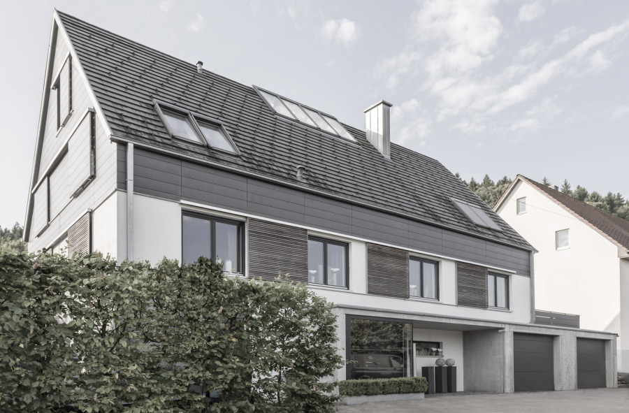 Ein altes landwirtschaftlich geprägtes Wohnhaus, hier wohnte ehemals die Oma des Bauherrn, in dichter Nachbarbebauung aber mit einem tollen Ausblick auf den Feldberg. Die niedrigen Geschosshöhen waren der Entschluss zum Teilabbruch. Durch den Höhenversatz der Garage zum Wohnhaus konnte das Untergeschoss tiefer gesetzt werden. Die Garage wurde mit dem überdachten Eingangsbereich gefasst und zusammengefügt. Der Innenraum wird durch ein wichtiges Raumelement dominiert – die Holztreppe erstreckt sich durch alle Geschosse und ist ein Möbel, dass sich wie ein Filter in die Mitte des Hauses durchstreckt. Der überdachte Terrassenbereich auf der Garage vergrößert zusätzlich den Wohnraum. Somit entsteht ein neues Ganzes und bildet zusammen mit dem Bestand wieder eine Einheit.