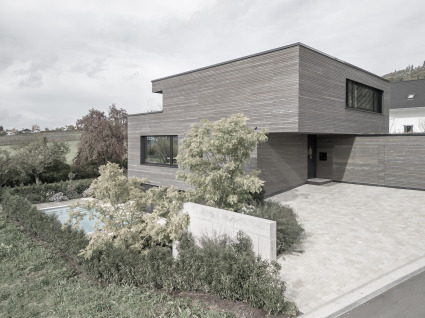Der Baukörper fügt sich harmonisch und zurückhaltend in die Hangsituation und bietet sowohl im Unter- als auch im Erdgeschoss einen